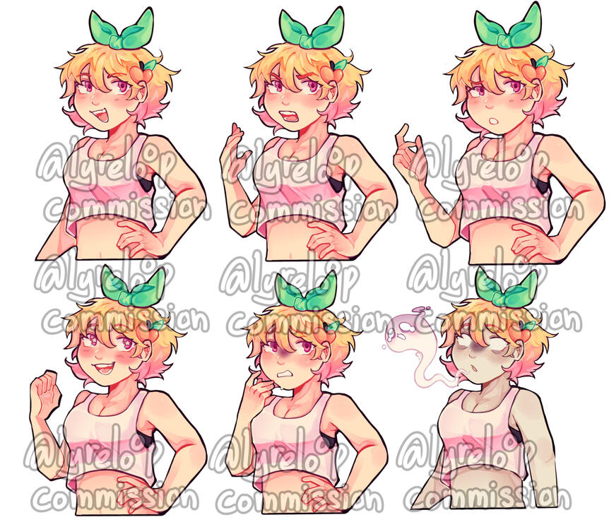 a set of 6 poses or expressions (open and closed mouth/eyes don't count as a separate expression)